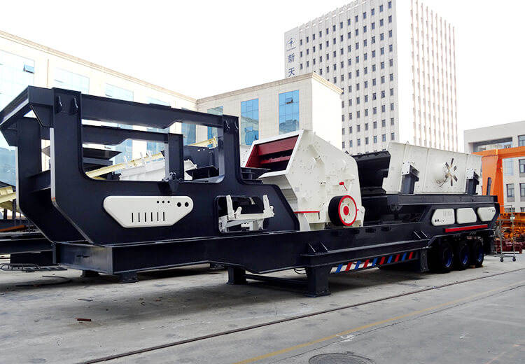 The wheeled mobile impact crusher is mainly composed of a feeder, a jaw crusher, a belt conveyor and a vibrating screen. It belongs to the medium-fine crushing and screening series. The crushing station integrates crushing and screening into one part, has higher crushing efficiency, stronger function, and excellent quality of crushed products, and can meet the requirements of crushing and screening of medium and fine materials in a wide range.