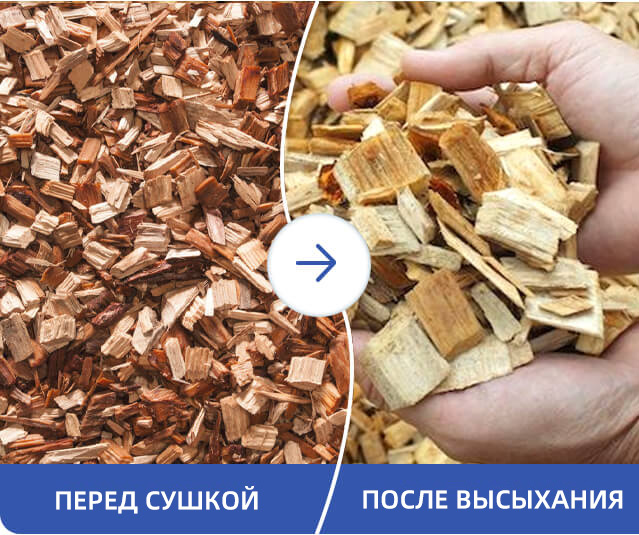 Сушилка для щепы FTM® может сушить щепу от влажности 40-50% до влажности около 10% или даже ниже, что подходит для хранения и сжигания в котле или в соответствии с требованиями клиентов.